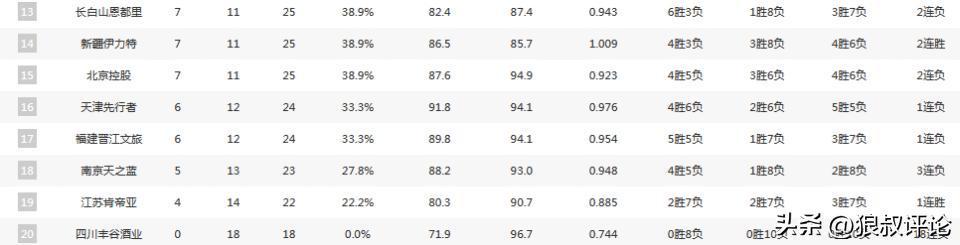 对于积分榜的影响相对比较大,上海4连胜冲上了积分榜第二,山东近11战10胜上升到第七,辽宁则是跌至第十二,南京一波9战8败跌至第十八。